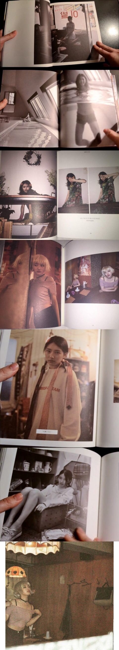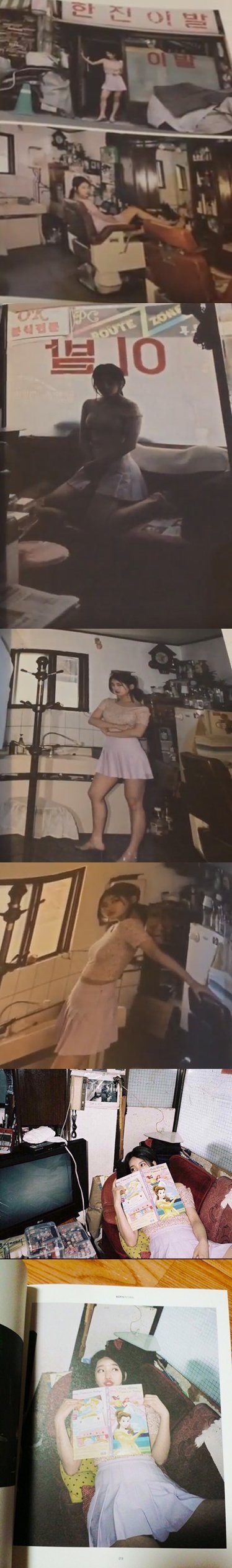 내가 본 이런 화보중에 제일 기분 이상해지는 화보임....뭔가 보이는 표정에 짧은 치마, 또 아빠 넥타이랑 애기 동화책, 성인이발소가 생각나게하는 장소 분위기부터 화양연은 진짜 충격임