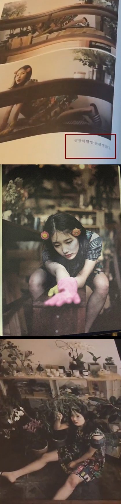 수지를너무나좋아하지만....사진을찍는데 결코헛으로쓰이는소품은없습니다. 작은포즈 빛의구도 배경하나하나가 사진작가나모델이지닌뜻을가지고있어요.더군다나 사진집이고전문가들이 만들었으니까절대로 자유롭게 생각없이찍었다고변명해선안될것입니다. 개인적으로로리타너무역겨워요. 왜 연예인들이 앞장서서 스스로를로리타끼를내재한 성적어필을하는지도모르겠고 뭔가무기력해보이는사진을왜찍는지도모르겠어요.이렇게연예인들이 로리타에이상한환상을가지고 SNs에쉽게업로드하니까 소아성범죄가더확산된다고생각합니다
