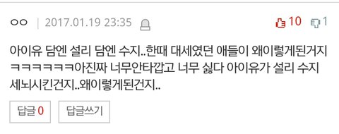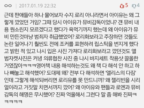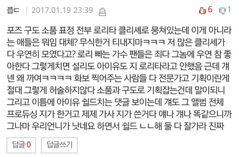 이 글 읽고서도 아이유 로리타 맞는데? 할거면 제발 의혹 안 풀리는거 댓글 달아주라 반대만 누르고 가지말고. 아이유팬이라서 쉴드치는게 아니라 진짜 아이유가 로리타가 아니어서 라고 생각은 왜 못 해?