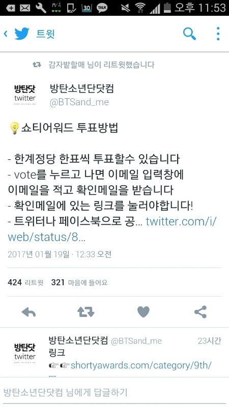 다들 쇼티어워드를 투표하도록 하장 http://shortyawards.com/category/9th/music 이건 링크고(미안ㅠㅠ 링크 수정)