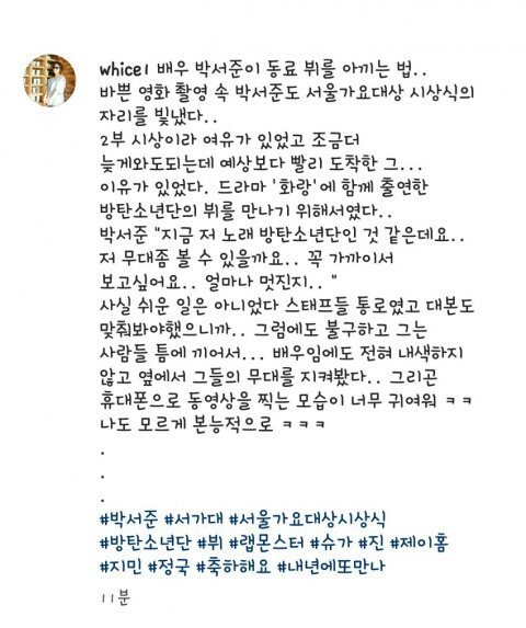 그리고 이상을 수상하기전에 박서준은 방탄소년단 무대를 봤음