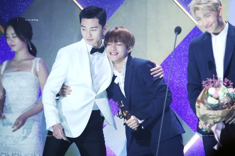 시상할때 박서준이 방탄소년단을 호명하며 "태형아 축하해~" 이렇게 외치고