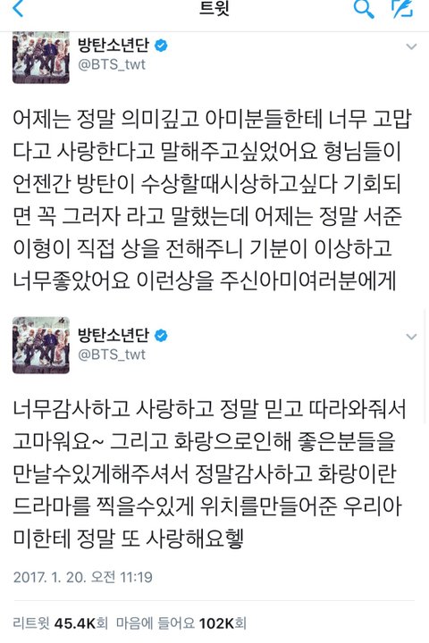 일단 어제 서가대에서 방탄소년단이 받은 최고의 앨범상을 박서준이 시상하게됨