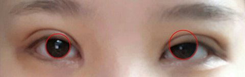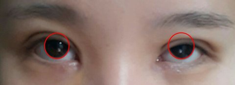 사진상 오른쪽 눈동자 노출이 심각하게 안되고
