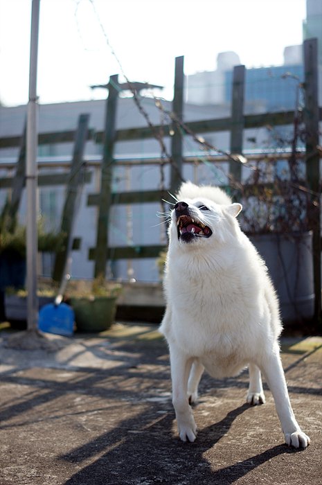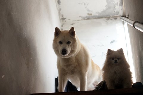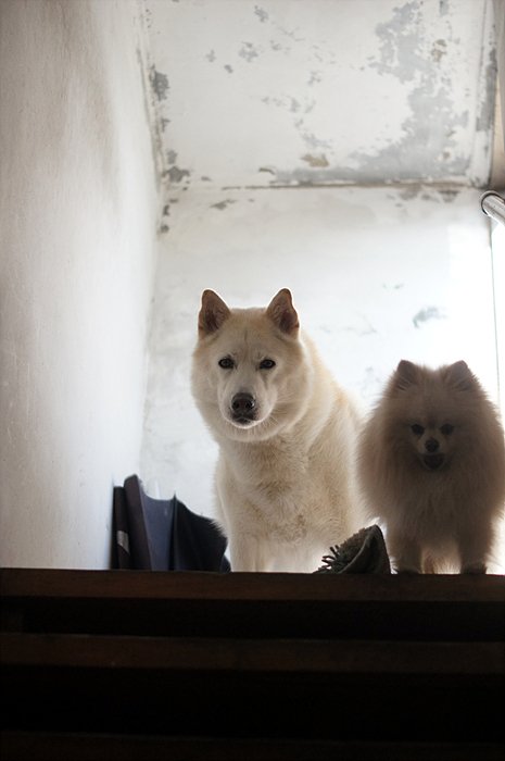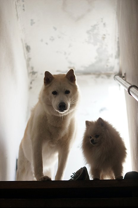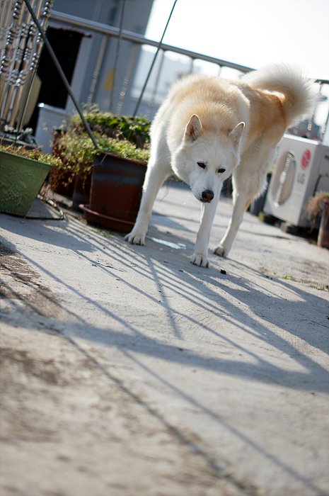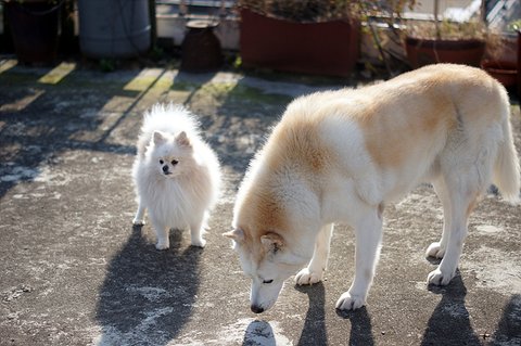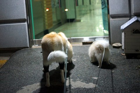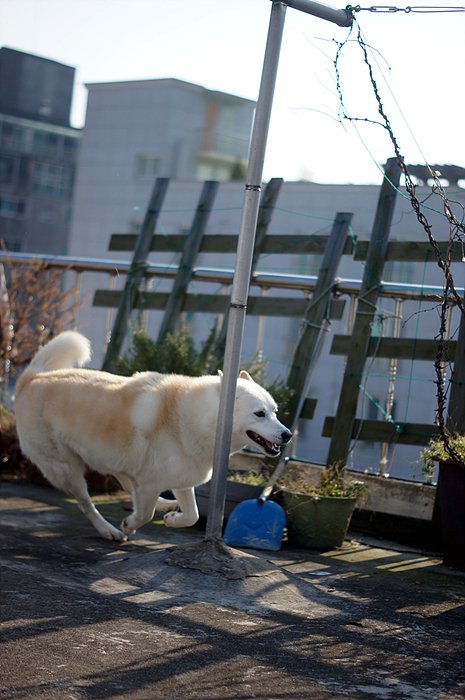 바람이 부니 많이 추운데. 둘다 털이 많이 녀석들이라 추위따윈 타질 않기 때문에 저혼자