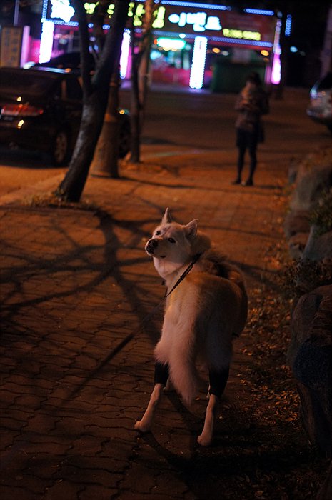 꽃순이도 산책시켜요 원래 산책을 잘 못하고 목줄하면 굳어버리던 개라서 산책훈련을 시키고 있기 때문에 집중한다고 사진을 안찍을 뿐이죠.