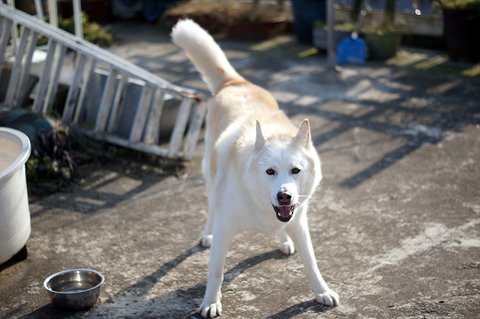 집근처에 사는 진돗개 친구 뽀비를 부르고 있어요.