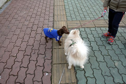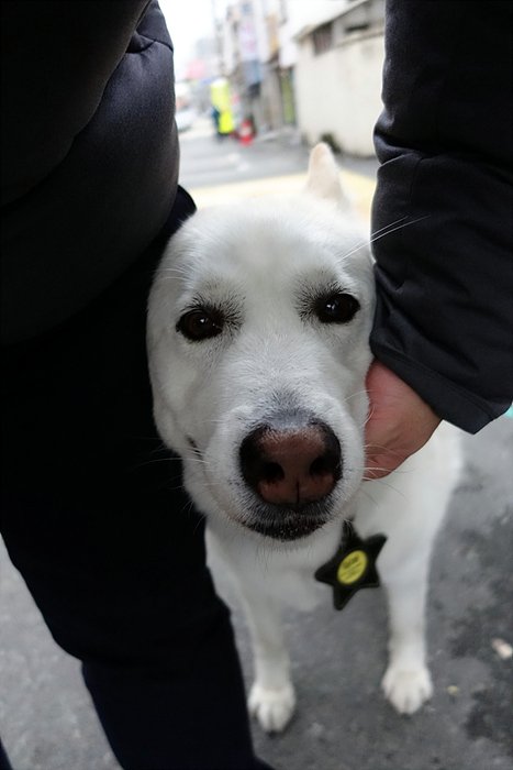 산책하다 만난 강아지에게 킁킁