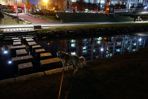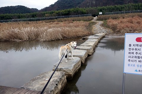 여천천 산책로를 한바퀴 돌고 이제 징검다리 건너기 직전에