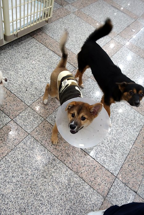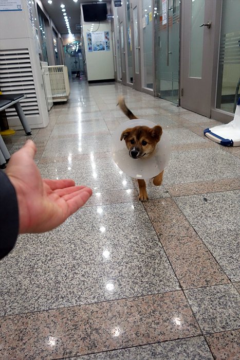 다음날 동물병원 놀러왔는데 늦게 와서 아무도 안계셨는데 풀어줬더니 좋다고 기분 좋다고 폴짝 거리네요