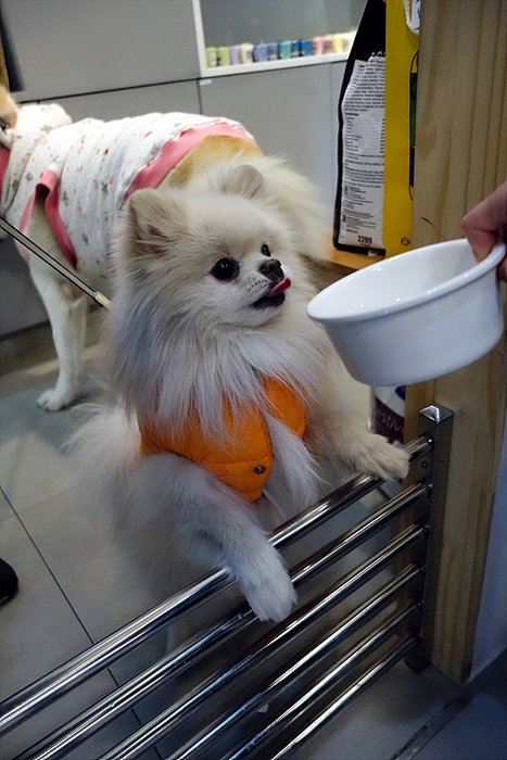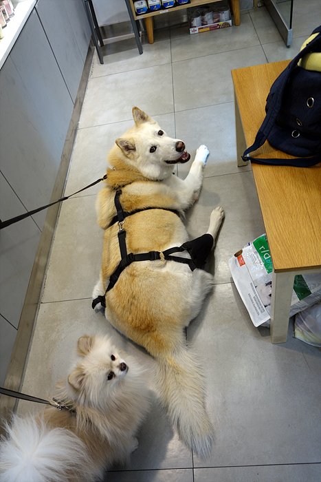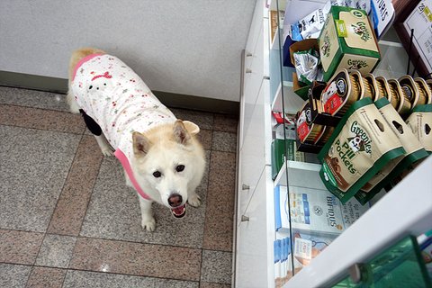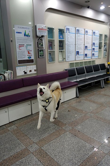 역시나 오늘도 동물병원부터 들려서. 간식을 달라는 눈빛을 쏘고 있어요.