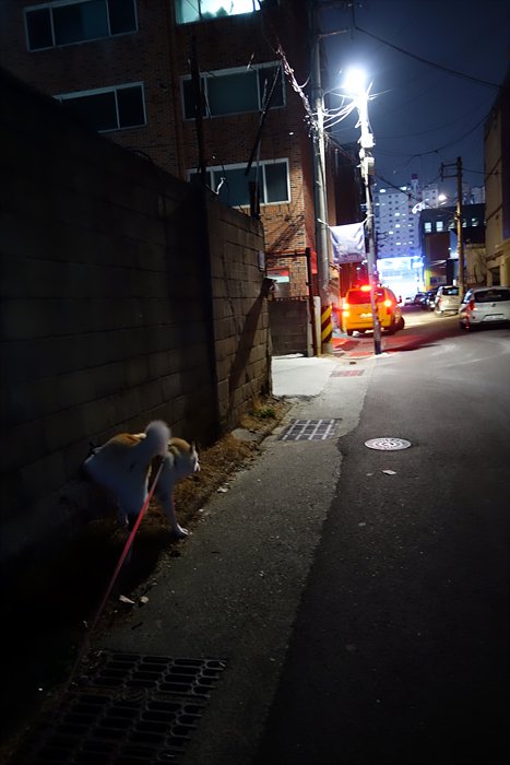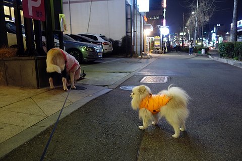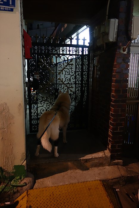 동네 반산책.. 동네 친구인 워모 냄새가 아마 여기저기 날테니 덮어싸고 있는 걸꺼에요