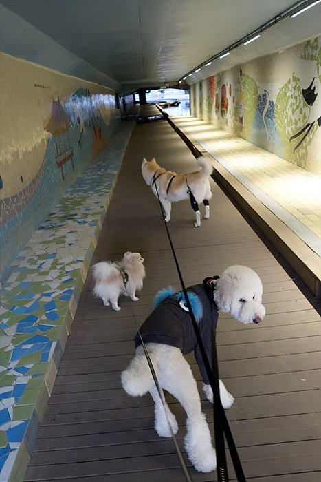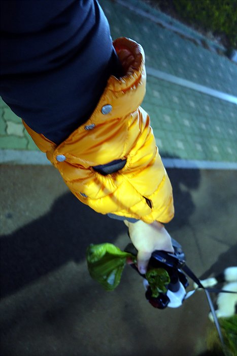 결국 불편해 보여서 산책 중간에 꼬도리 패딩은 팔토시가 되어버렸어요.
