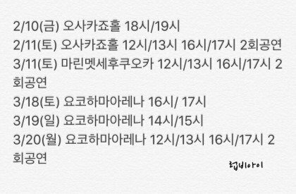 요건 그냥 짤 3월달내에 컴백한다고 기사났는데 말도 안돼., 2월 3월 쭉 일본투어 아님? 한다해도 국내활동 없을거 같음
