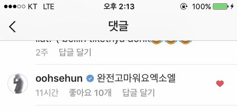 ㅁㅊ 세훈이 인스타 댓달았대