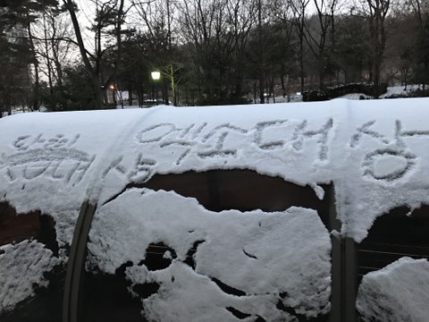 집앞에 눈위에 EXO대상 썼는데 누가 찍찍긋고 닥쳐 써서 빡쳐서 옆에 또 엑소대상 써놈 강아지