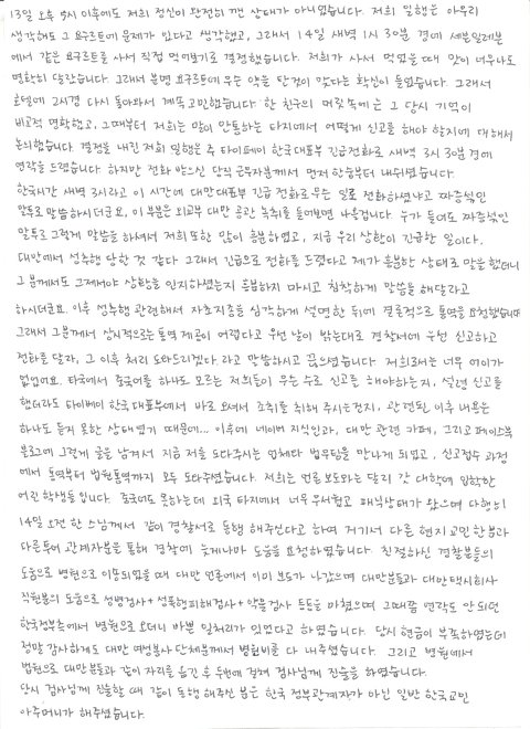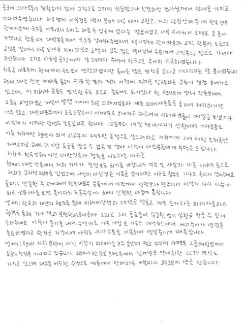 아래는 피해 학생들의 호소문 전문입니다. 사진이 읽기 불편하신 분들은 아래로 내리시면 텍스트가 있으니 편한 방법으로 읽으시기 바랍니다.