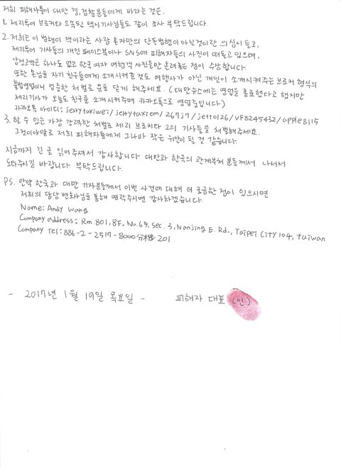 첫째 : 대만 언론에서 저희 기사가 정정 보도 되기를 바랍니다