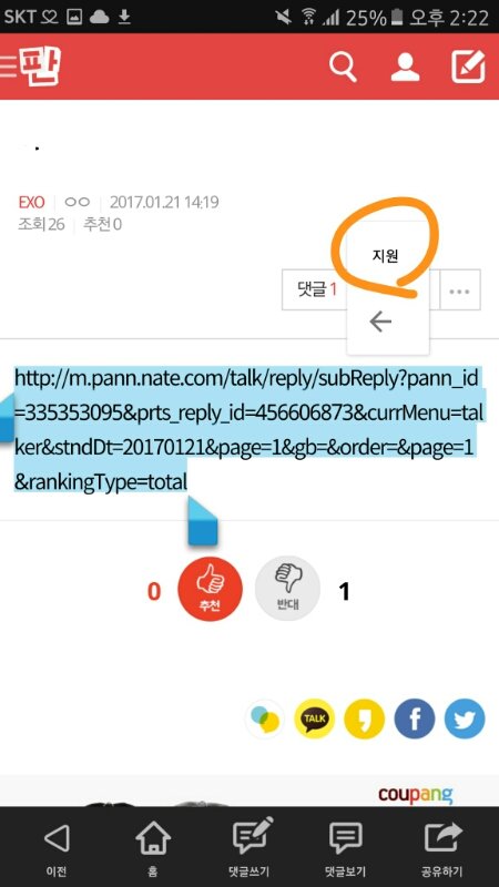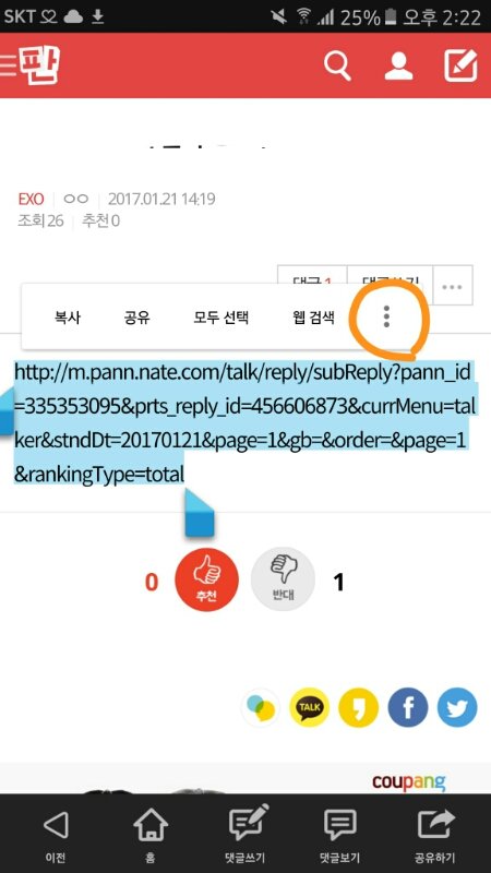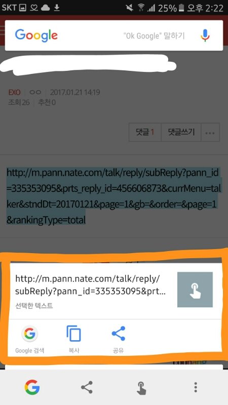 우선 이렇게 링크 전체를 선택하삼 그리고 점 3개있는거 클릭 어떤 폰은 웹검색만 눌러도 될수도???