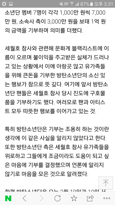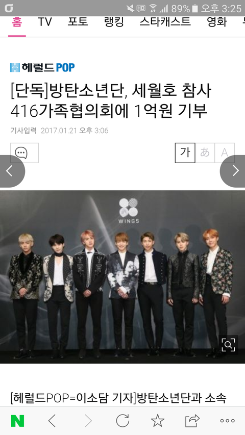 방금전에 세월호 참사 416 가족협의회에 1억 기부했다고 기사뜸!!! 마음씨도 예쁜듯