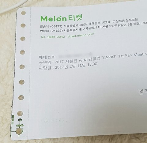 오늘 11시 반부터 4시 반까지 학원에 잡혀있었는데 전화가 막 오는거야 받으니까 택배기사님이더라구....! 학원이라서 택배 받기가 곤란하다고 그러니까 이거 세븐틴 티켓인데 경비실에 맡기거나 집 앞에 놓으면 안된다고 학원 어디냐고 그러시는거야! 학원이 좀 멀리있는데 학원까지 오셔서 티켓 주셨다ㅠㅠㅠㅠㅠㅠ 서명하고있는데 "우리 딸도 세븐틴 좋아하거든~ 학원에서 수고가 많다!" 하시는거야 너무 감사했어ㅠㅠㅠㅠㅠㅠㅠㅠㅠㅠㅠㅠㅠㅠ 셉부심도 느끼고,,, 나한테 누구 좋아해? 승관? 원...우?? 이러셨는데 다좋아한다고 너무 감사하다고 90도인사하니까 웃으시면서 엘리베이터 타고 내려가시더라... 아 학원에서 티켓받고ㅠㅠㅠㅠㅠㅠㅠㅠㅠㅠ어퓨ㅠㅠㅠㅠㅠㅠㅠ너무좋앗어ㅠㅠㅠㅠㅠㅠㅠㅠㅠㅠㅠ셉부심ㅠㅠㅠㅠㅠㅠㅠ