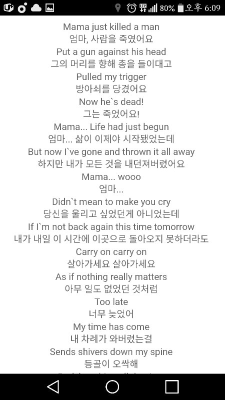가사도 중요해 진짜 봐봥 나 가사 보고진짜놀람....글고 애들 계속 피스하는것도 앨범스포인것같고(난 평소에 피스가 롹과 관련있다고생각했었거든왠지는모르겠엌ㅋ헤비메탈이라던가..)글고 'Queen'이라는 그룹은 락 그룹이였고 락과 관련된건 'peace'야 막 사람들이 락부르다가 피스(손모양 취하는거)하는경우도 락에서많이쓰이는경우니까 하는거고