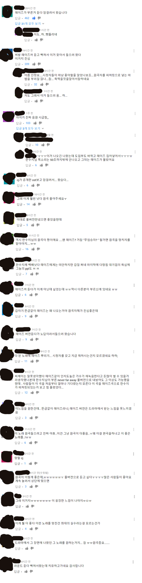 지금 유튜브 도깨비ost round and round 댓글상황