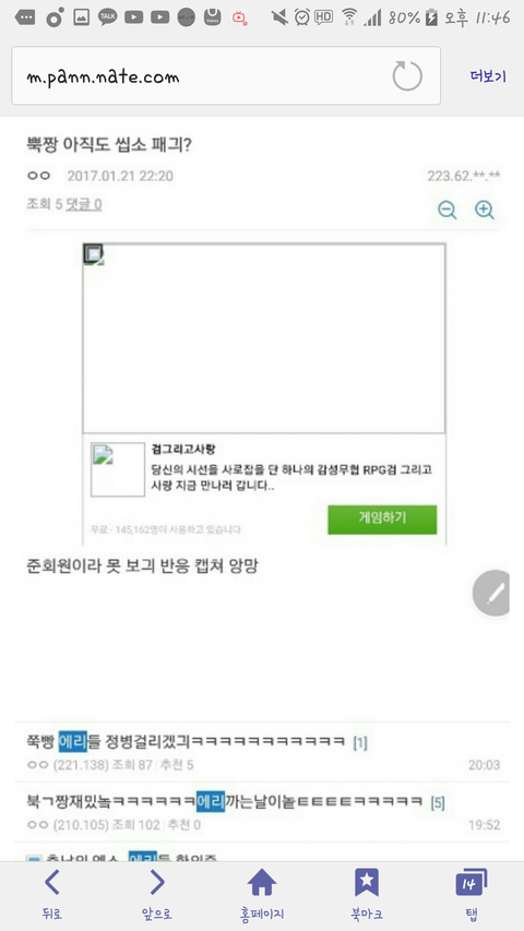 팬톡 검색 보기