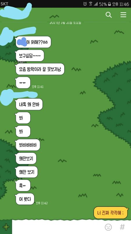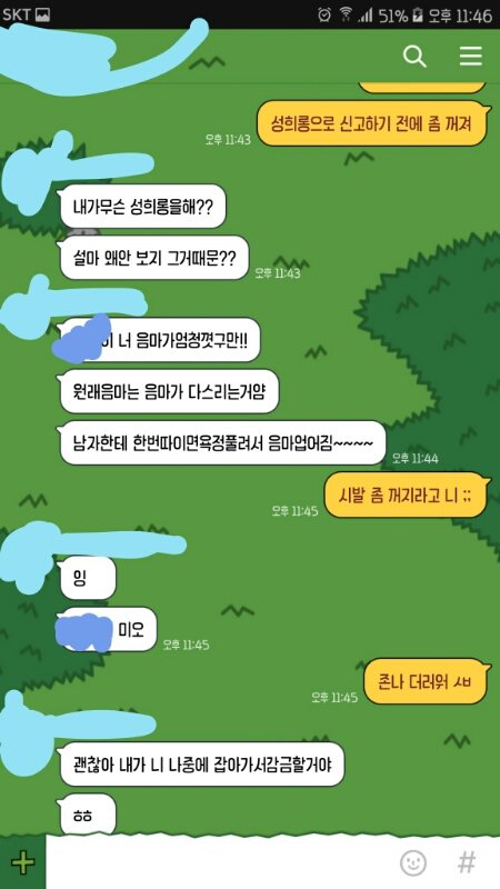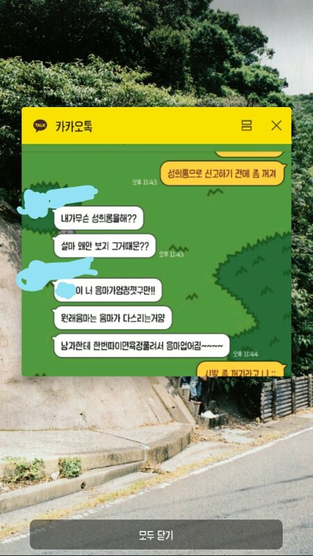 이름 안가린게 있어서 다시 올림 . 이새끼 빠른년생이라 나보다 어린데 (같은반이긴함) 몇일 전부터 계속 이런 카톡보냄 .. 개빡쳐 ㅅㅂ 뭐라보내지 ㅅㅂㅅㅂㅅㅂ 이런 새끼 어떻게 처단하냐 ? 걍 차단하려다가 엿맥이고싶어서