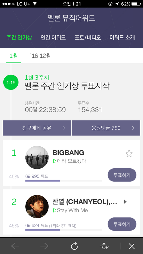 야 투표 좀하고와 1등할수있는데 하루남기고 뺏겼어