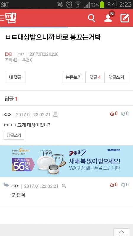 ㅂㅁㄱ위로 이상한 댓싸지 말라고 아래 ㅂㅁㄱ있는데 왜 또 싸 ㅅㅂ그게 그렇게 어렵냐?