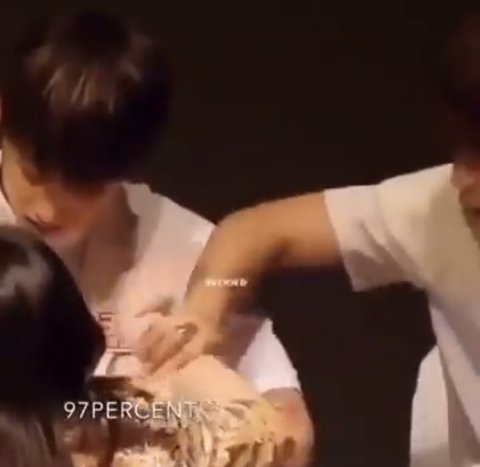 (실응 팬분이 정국이 가슴에 스티커?붙이는 장면)