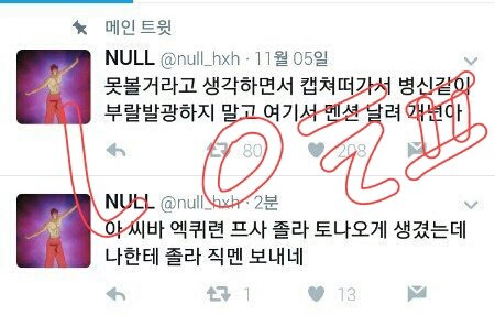 너 이름 알려지기전에 막 패드립도하고 그랬더라 니네팬들이 뒤에서 서폿해주니까 갑자기 차분한척하고 팩폭러인척하는데 너 전에행실 캡쳐본 다있어 그냥 그렇다구,,, 쏠마 이거 캡쳐해서 틧에 네이트판엑소엘이 협박하네요 그래서 어쩌라구? 요래 올려주면 고맙구,,,