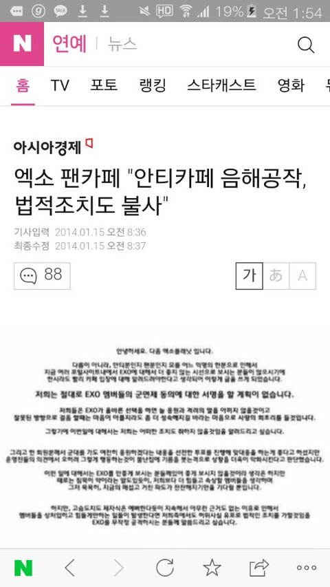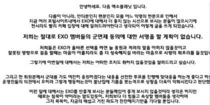1, 우선 가장 크게 알려진 엑소 군면제 사건에 대한 해명입니다. 엑소 대신 대한민국 남자들이 병역의 의무를 더 지는 것이 어떠냐라며 서명운동글이 올라왔고 엑소 군면제 사건이 크게 이슈화 되었습니다. 이에 그 당시 저희 팬덤 대표는 다음 카페에 해명글을 게시했고 이는 나중에 가망소의 소행임이 밝혀졌습니다.