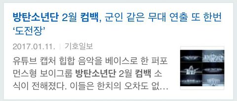 군인 컨셉이아니라 군인같은 멋진 군무? 그런거야, 기사 읽어봐