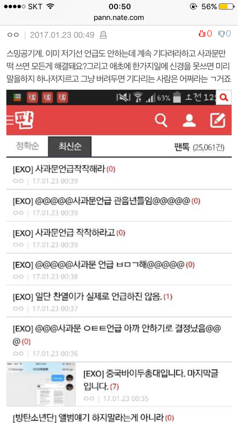ㅇㅇ 니들이 먹금 한 거 쟤들 다 알고있고 나중에 ㅇㅌ에 우리 사과문 관련 저쪽에서 글 안 좋게 올려서 이미지 타격입어도 ㅂㅁㄱ 달거나 ㅁㄱ 한 애들은 할 말 없음