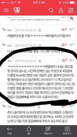 두번째 베댓 레1벨팬이라면서 저쪽 옹호하는 댓글 대댓인데 아무리 화나도 저렇게 말하진 말자 막말로 저 베플 올린 사람이 팬코일수도 있고 저 사람이 잘못한거긴 한데 레1벨분들까지 저런식으로 말할 필요는 없잖아 우리도 비슷한 일 겪어봤으니 잘 알거아니야.. 아무리 화나도 저런건 자제하자 방탄 얼굴이 걸린 일이야