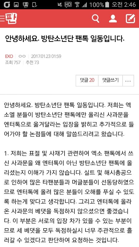 관음 박제 73명 나가세요 니네팬톡에서 쳐놀아