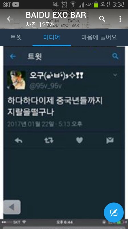 올려놓은 자료에 내가 직접 캡쳐한거 있음ㅋㅋㅋㅋ확대 해보니까 빼박 내꺼 조카 공식 바이두바에서 나년 캡쳐를 써주다니 영광이다ㅅㅂ팬톡에 퍼다나른 글이 중국까지 날아가다니ㅅㅂ새삼 인터넷의 발전에 놀랐다