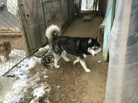 허스키 리안이(남) 4살추정. 기본검진 완료. 사상충 음성. 중성화완료.