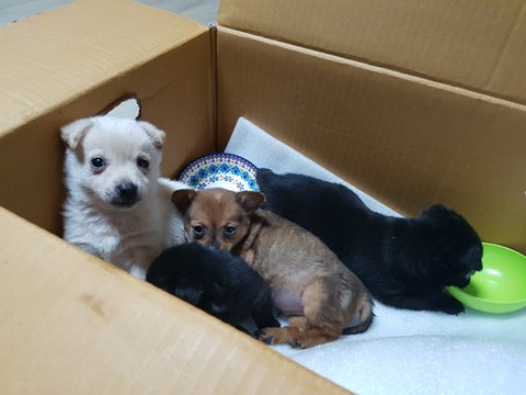 그곳 차가운 컨테이너 서랍장에 새끼를 낳고 키우고있던 아지와 새끼강아지 4마리를 만났습니다.