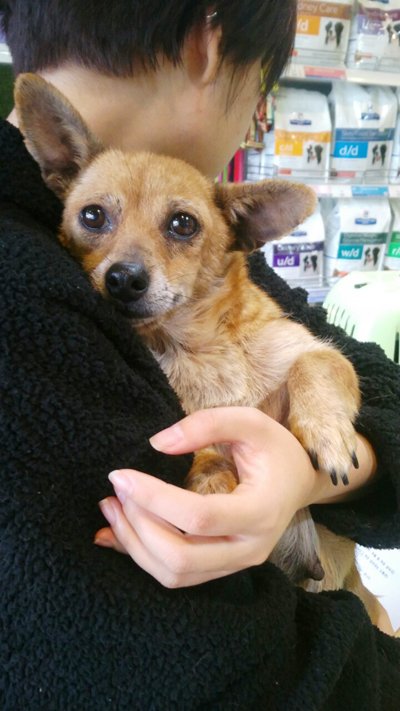 믹스견 아지(여) 2살추정. 4킬로. 사상충 감염으로 치료중.