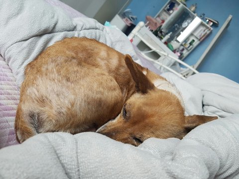 구조후 병원검진을 진행하였고 현재 어미견 아지와 새끼 4마리 모두 곰팡이성 피부병이 심한 상태라는 진단이 나왔습니다.