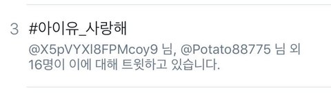 수정) 애들아 지금 트위터에서 아이유 사랑해 3위야 유애나들 단합 이렇게 쩌는거 처음봐 대박ㅜㅜㅜㅜㅜ계속해서 순위 올라가고 있는 중이니까 실트 더 올려서 지은이가 볼 수 있도록 트위터 있는 유애나들은 글 올리고 리트윗 좀 부탁해!!
