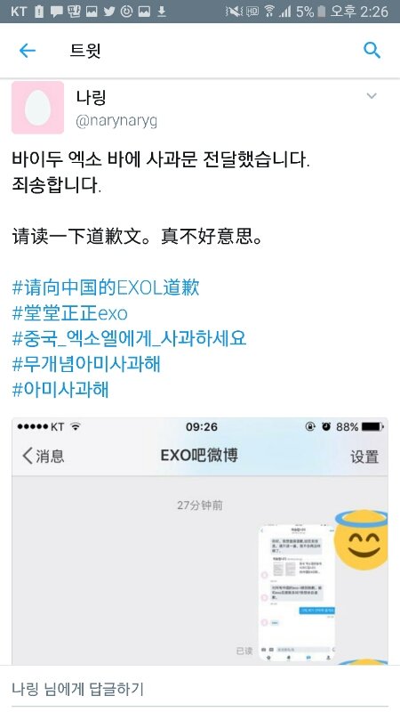 bye두에 사과문 전달했데