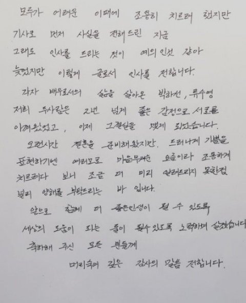 박하선-류수영 커플이 2년열애끝에 드디어 결혼햇다!!!!!!!!