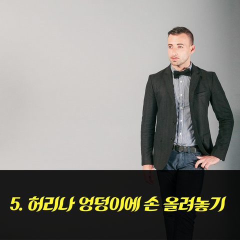 만약 남자가 자신의 손을 자신의 엉덩이나 벨트 부위에 올려놓고 있다면,그가 당신에게 관심이 있다는 증거일 수 있다.