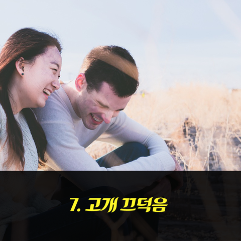 남자가 여자의 말에 고개를 자주 끄덕거리면 그것은 당신을 좋아한다는 뜻이다. 고개를 당신 쪽으로 가깝게 다가간다면 남자는 당신 말 한마디한마디에 신경을 집중하고 있다는 표시다.
