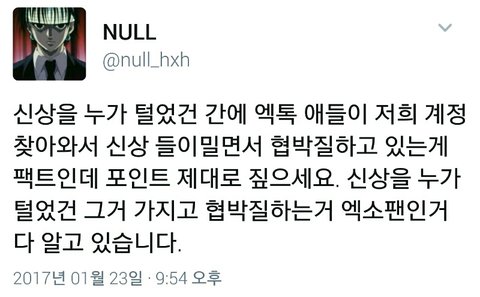 ㅅㅅ털린게 중요한게 아니라 그걸 가지고 협박을 하는 우리가 문제라고? 우리가 뭐 협박했어? 도대체 뭘 협박했지? 뭐 저 글 올린거 우리 아니다 라고 해명밖에 더했어? 뉼아 너무슨소리하는거야? 눈팅하고있으면 제발 댓 좀 달아줘 난 니가 무슨말을 하는지 하나도 모르겠어 왜 자꾸 말을 바꾸고 니 인신공격은 욕도 아니고 니 ㅅㅅ털린건 잘못되고 고소받아야마땅하고 피뎊따야하는거야?