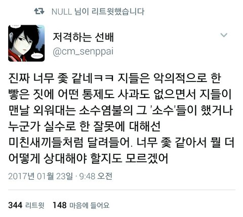 음뭐지? 쟤네 지금 '소수'의 일로 우리까는데